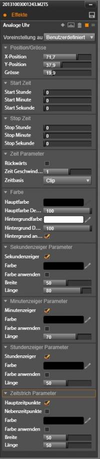Das folgende Bild zeigt den Effekt Dialog nach Auswahl des „Analoguhr“ Effekts.
