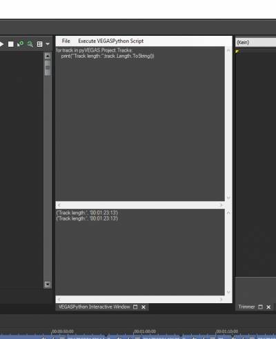 You open the window in VEGAS via „View - Extensions - VEGASPython Interactive Window“