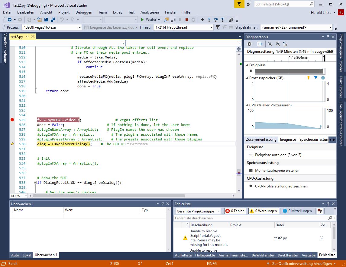 With VEGASPython, Vegas stays open with the test project all the time. You only have to restart the script for testing after you updated it.