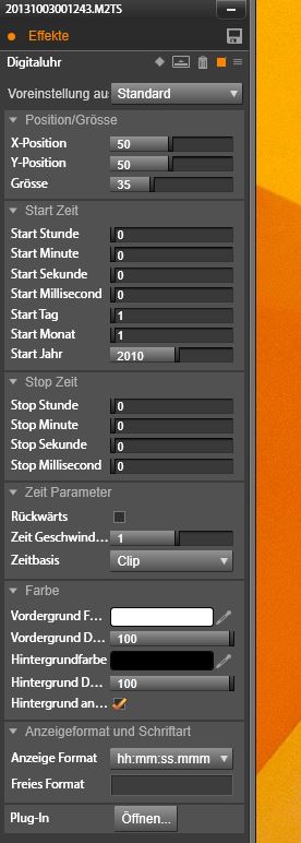 Normalerweise startet die Uhr bei jedem Clipanfang mit 00:00:00. Mit diesen Parametern kann die Startzeit festgelegt werden.