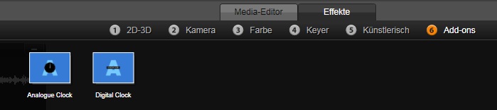 Download the file RTFXClockbeta.zip. Unzip the files and save the file RTFXClock.fex and RTFXClock.fxt in the directory „C:\Program Files\Pinnacle\Studio 18\plugins\RTFXV2“, where „C:\Program Files\Pinnacle“ is the PinnacleStudio Installation Directory. If you wish You can create a subdirectory in the RTFXV2 directory to save the RTFXClock-files in. Start Pinnacle Studio.