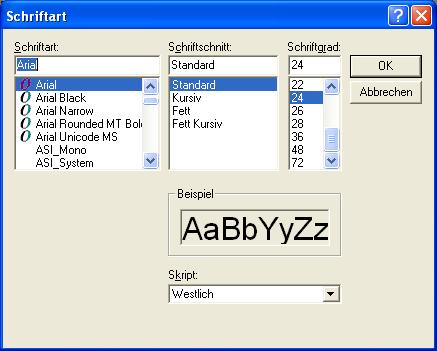 The EDIT button allows you to select the font family and font style and point size. When you click on the button a „Font Selection“ window opens.