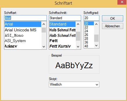 | Font | – | – | – | Select the display font | When clicking on th ebutton a font selection window opens | |